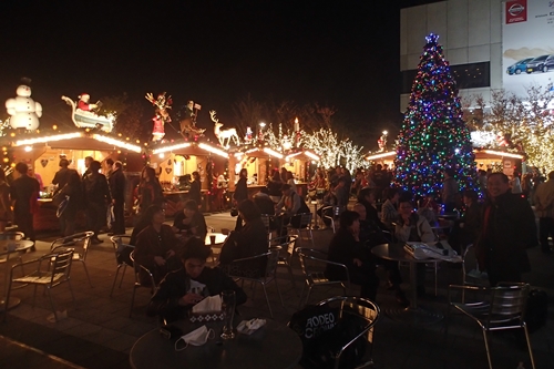 スカイアリーナではクリスマスマーケットが開催。クリスマス発祥の地であるヨーロッパの街並みを再現したんだって。ドイツビールが飲みたかったけど、ここではグッと我慢。
