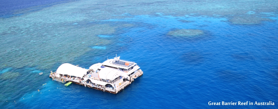 ヘリコプターから見た世界遺産グレートバリアリーフ。珊瑚礁は綺麗だったけどあっという間の観光だった。