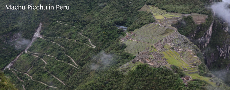 ワイナピチュから見たマチュピチュ。15世紀のインカ帝国の遺跡。霧が晴れて姿を現す様子は神秘的だった。
