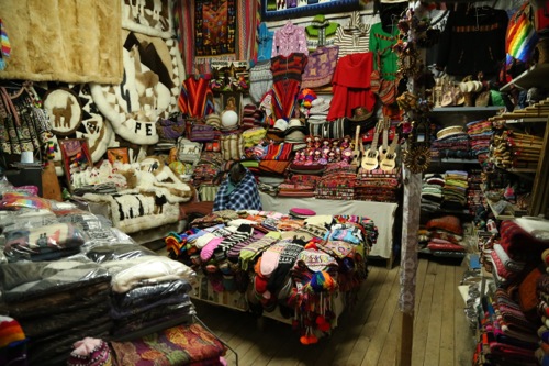 主にアルパカの毛を編んで作られたもの。ATM で下ろしたての現金を使いそうになったけど、ここはグッと堪えて市内の土産物屋も見てみることにした。