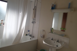 この一戸建ては 5LDK で相当広い。1階には1部屋、キッチンが2つ、ダイニング、リビング、トイレ、それにガレージが付いている。2階には4部屋、トイレ、バスルーム、それに倉庫が付いて屋根裏部屋まである。
