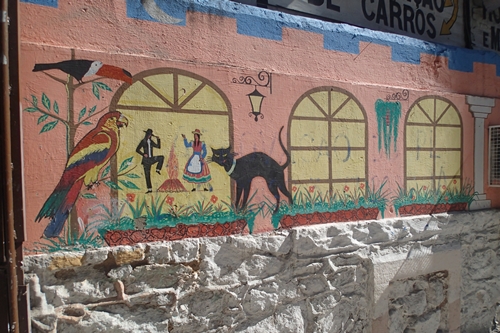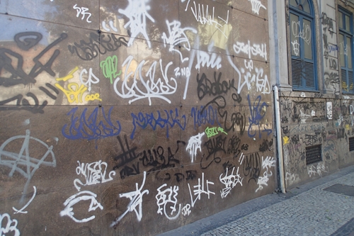 ▲治安の悪さを感じさせる落書きも。