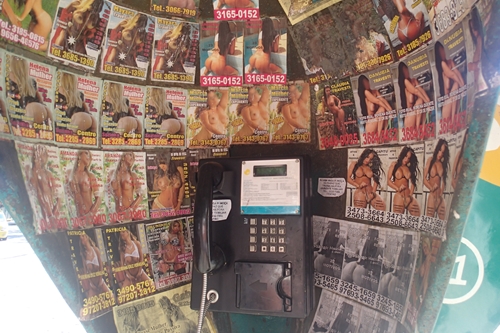 ▲電話ボックスにはピンクチラシがびっちり。