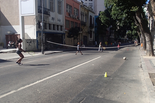 ▲道路を通行止めにしてテニスw