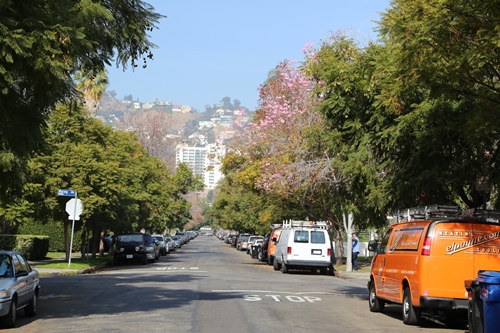 家を出て車を取りに行くとき、ふと見上げると素晴らしい景色。ビバリーヒルズの高台をすぐ近くに見ることが出来る。