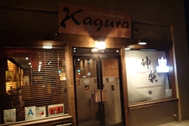 一通り見て回って買い物を済ませたら居酒屋へ。スーパードライが飲みたくて神楽というお店に連れて行ってもらった。お店の外観と内装はこんな感じ。