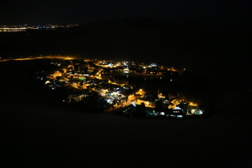 さらに風が強くて砂が飛んできて痛い。それは登れば登るほど強くなる。カメラは防塵仕様じゃないし悩むこと数分... 一応、撮ってみるかと手持ち撮影した夜景がこれ。