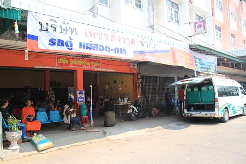 ここで違うミニバスに 78THB 払って乗り換える。メーソートへ行く人を募って満席になったら出発するようだ。運よくスコータイから乗って来た人がほぼメーソート行きの人で助かった。